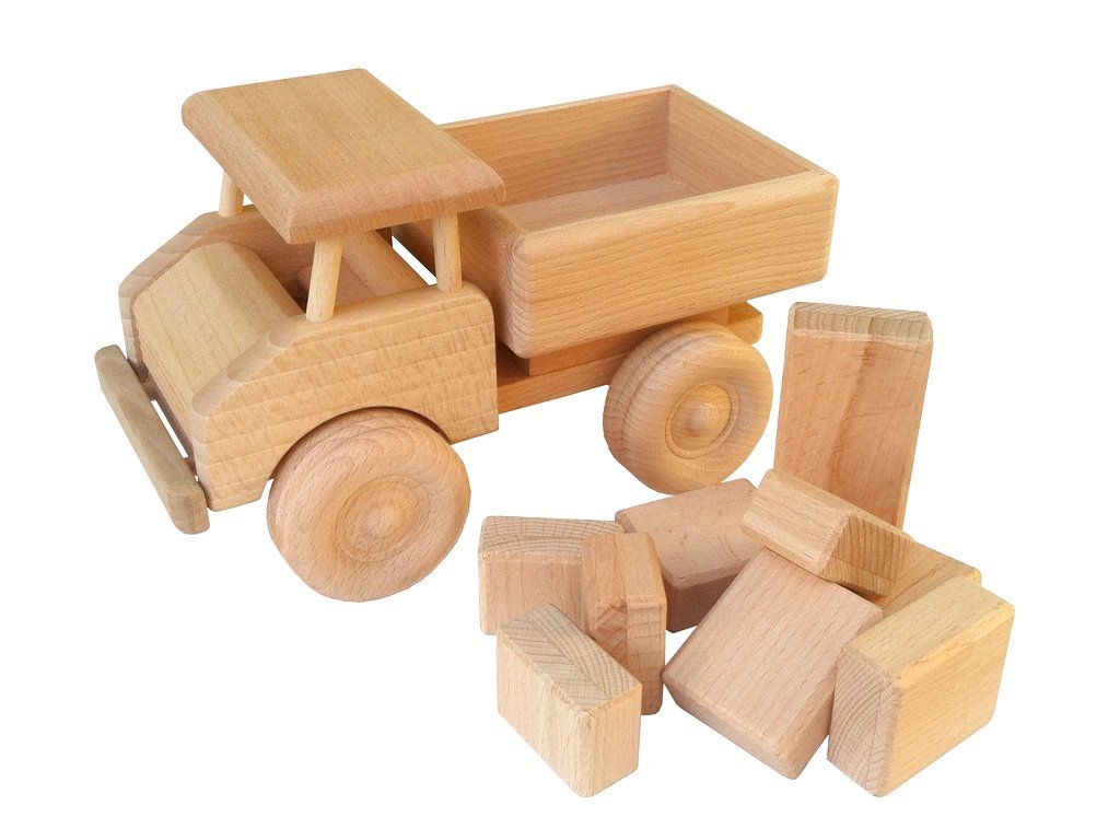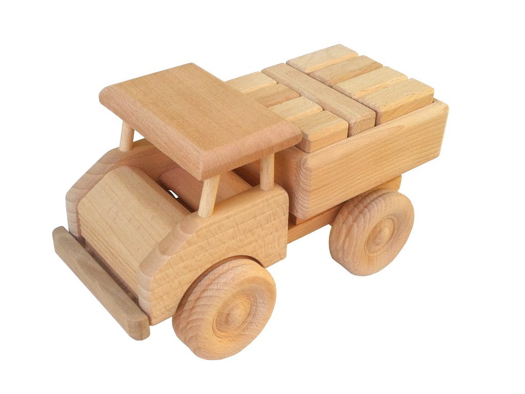 Masivní dřevěné auto s kostkami | Premium