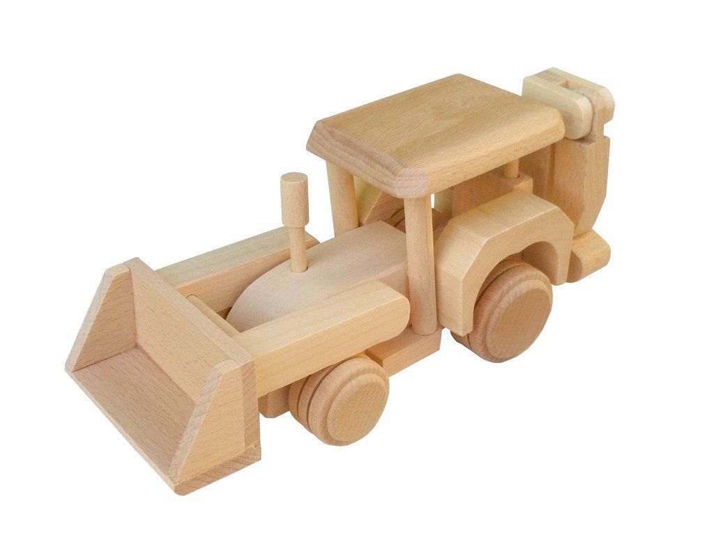 Masivní dřevěný bagr pro malé stavitele. Neúnavný pomocník na každé dětské staveniště. Tento robustní bagr z přírodního masivu kombinuje přední radlici pro hrnutí a zadní funkční lžíci pro hloubení. Poctivé dřevěné zpracování zaručuje, že tento stroj zvládne i ty nejnáročnější stavební úkoly v obýváku i na koberci.