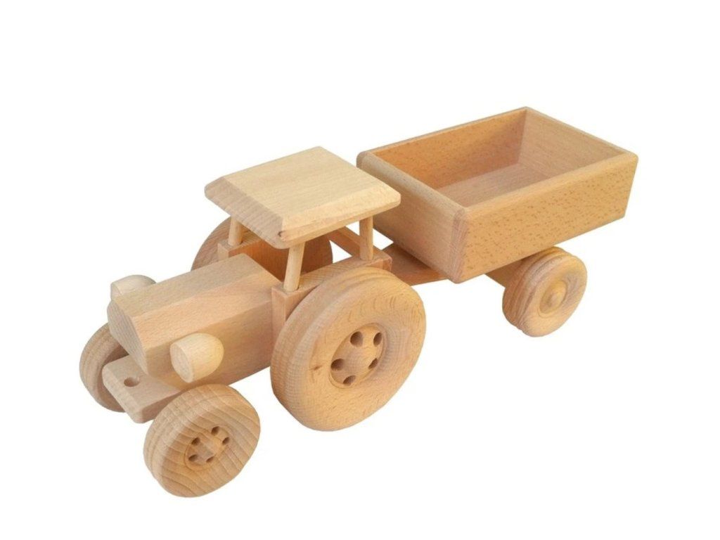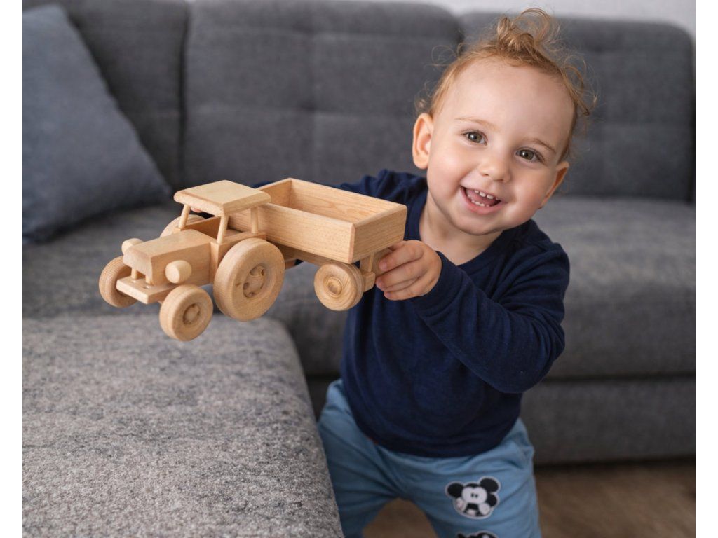 Přeneste kousek venkova přímo k vám domů. Náš dřevěný traktor s přívěsem je navržen tak, aby odolal i tomu nejnáročnějšímu terénu dětského pokoje. Kombinace velkých zadních kol a odpojitelné vlečky nabízí dětem autentický zážitek z jízdy a manipulace s nákladem.