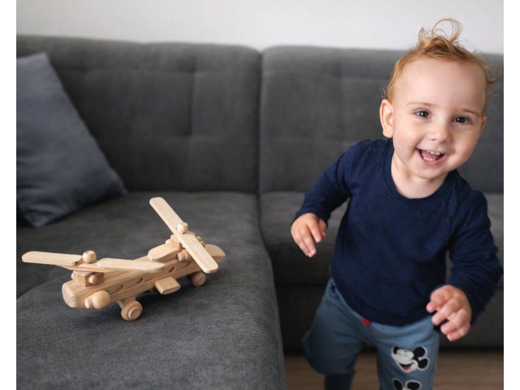 Masivní dvourotorový vrtulník pro malé záchranáře. Zapomeňte na křehké plasty. Tento poctivý dřevěný stroj s dvěma pohyblivými vrtulemi je stvořen pro nekonečné mise v dětském pokoji. Dokonalé spojení odolnosti, přírodního designu a mechanické hravosti, která rozvíjí jemnou motoriku.