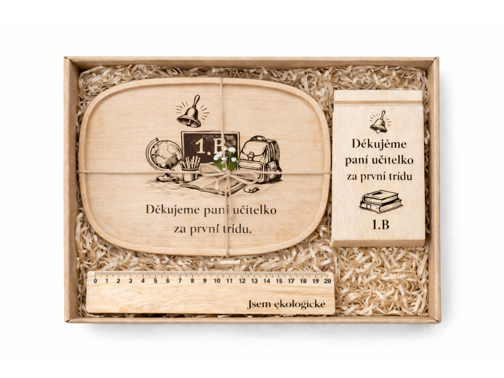 Připravily jsme pro Vás krásné poděkování Vaší p. učitelce/ firemní dárek. Komplet se skládá ze 3 věcí. ( podnos, držátko na mobil a úžasné pravítko) všechno je z kvalitního dřeva. Na podnos, držátko na mobil nebo pravítko, jsme schopni vytvořit jakýkoli obrázek popř. text.