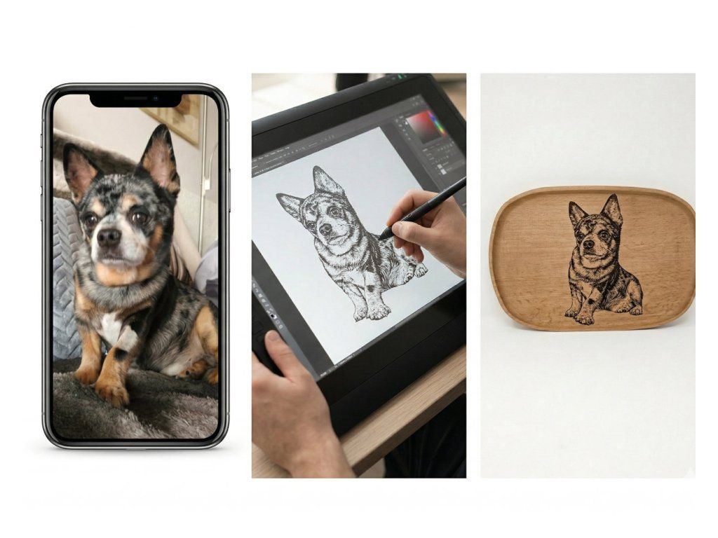 Náš gravírovaný podtácek vzniká na základě fotografie, kterou nám zašlete po objednání. Portrét vašeho psa, kočky nebo jiného mazlíčka pečlivě zpracujeme a vypálíme laserem do kvalitního dřeva. Výsledkem je detailní, odolný motiv, který nezmizí ani po měsících používání.