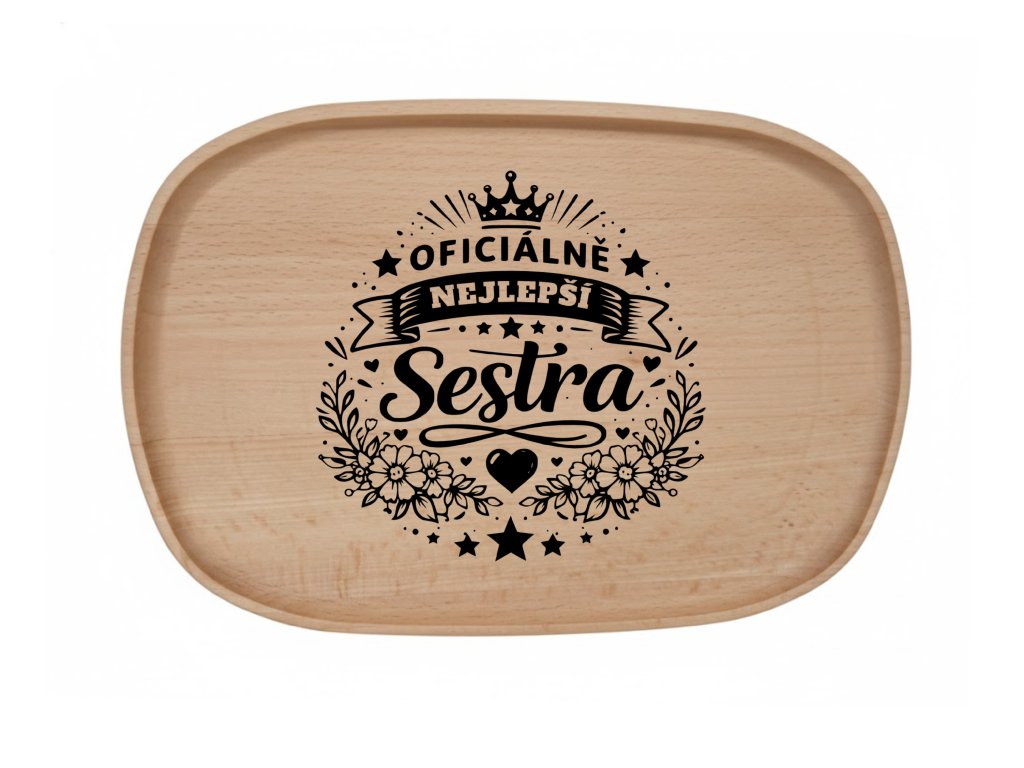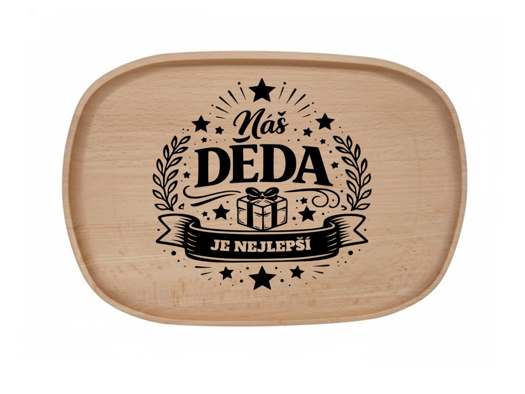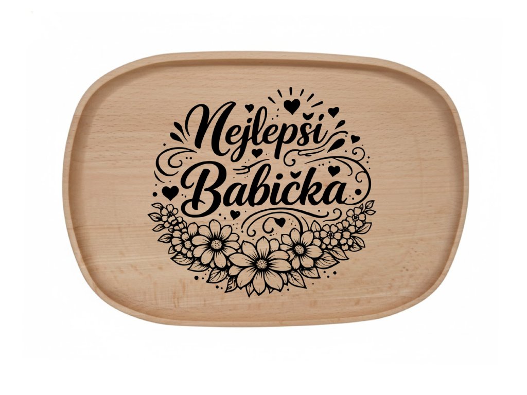 Chtěli byste k názvu přidat i jméno nebo specifické datum? Pokud mi napíšete text, můžu vám navrhnout, jak ho na podnos nejlépe rozmístit.