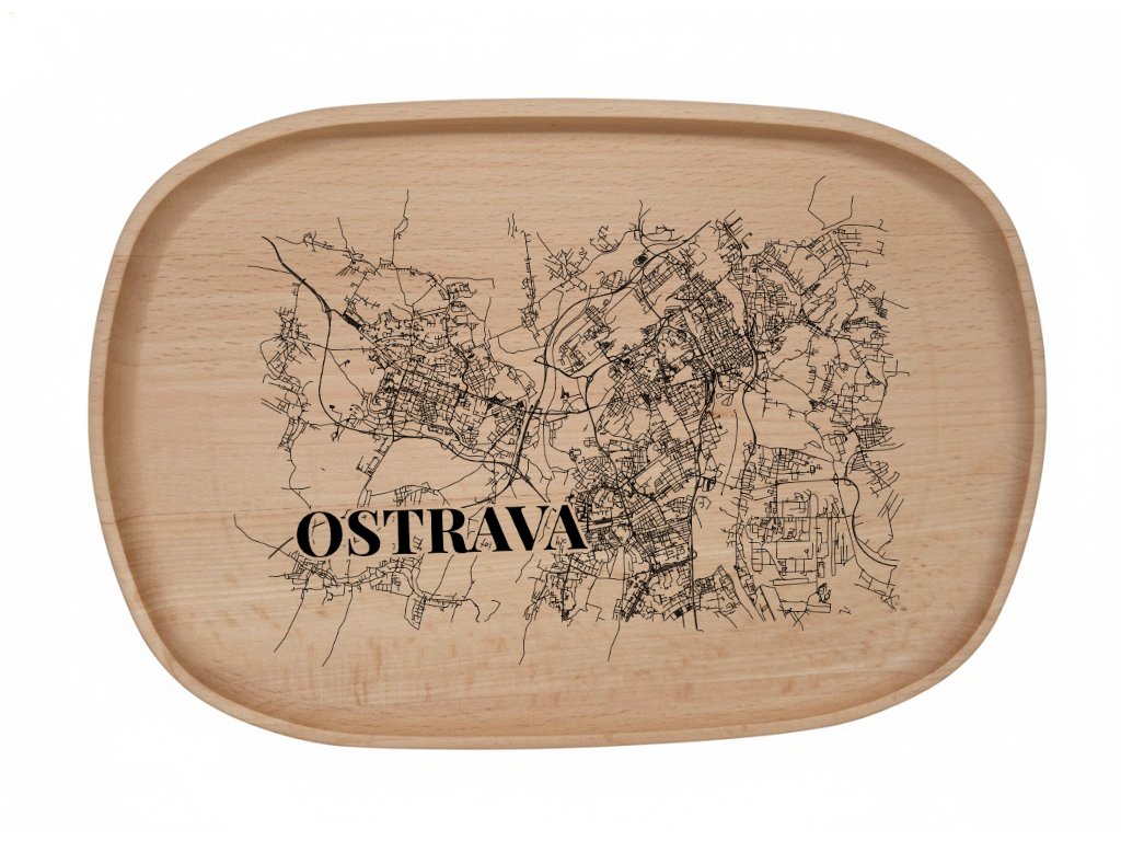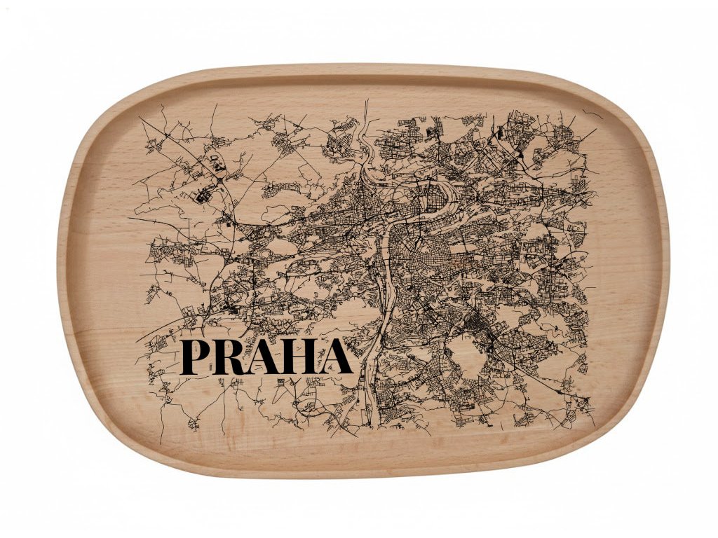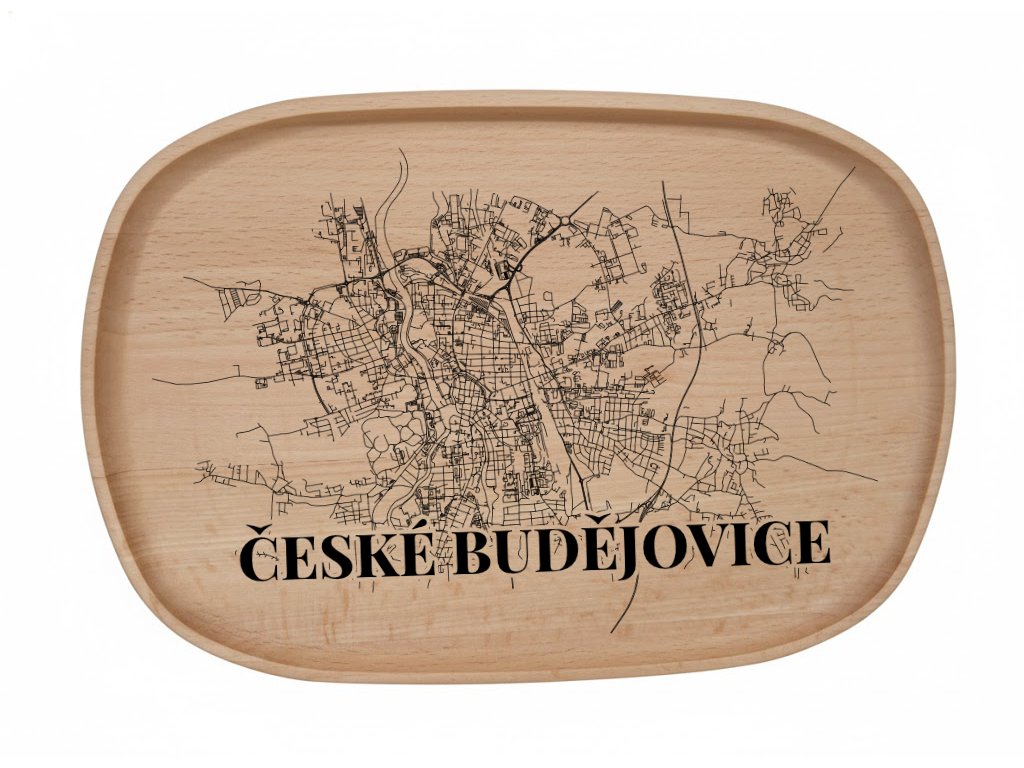 Dřevěný podnos z bukového masivu - Motiv Mapy Měst Dřevěný podnos z bukového masivu - Motiv Mapy Měst