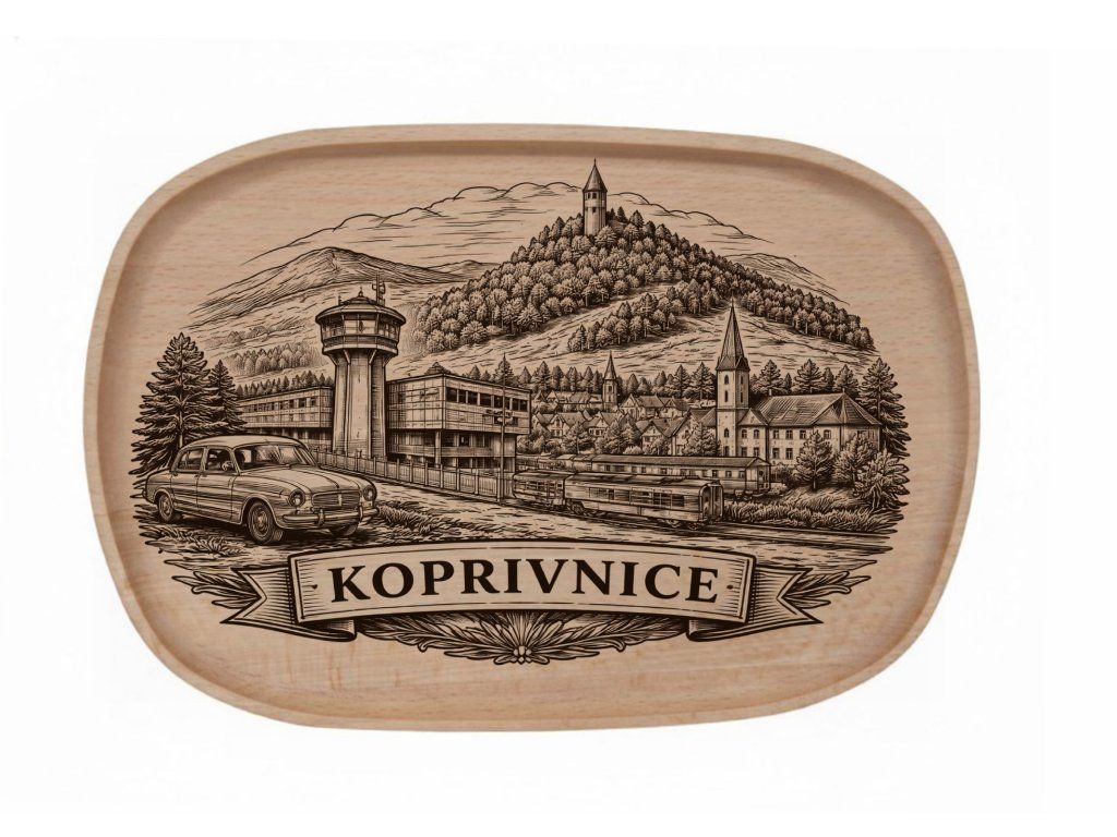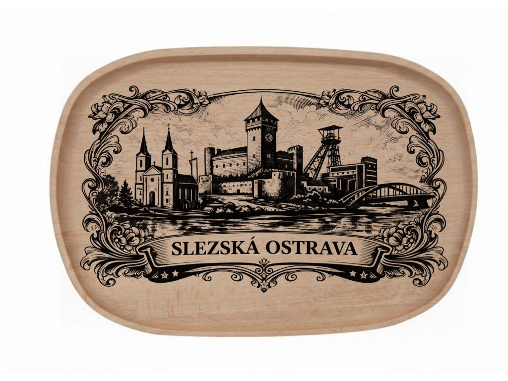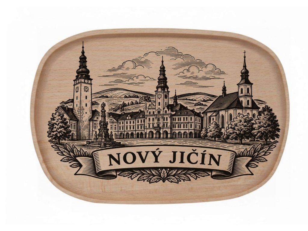 Dřevěný podnos z bukového masivu - Motiv Města Dřevěný podnos z bukového masivu - Motiv Města