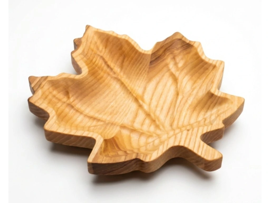 Tato miska není jen obyčejným kusem nádobí; je to oslava podzimní přírody zachycená v trvanlivém dřevě. Díky detailnímu vyfrézování žilek listu a vyvýšeným okrajům působí miska plasticky a luxusně. Každý kus má unikátní kresbu letokruhů, což z něj činí originál, který nikdo jiný nemá.
